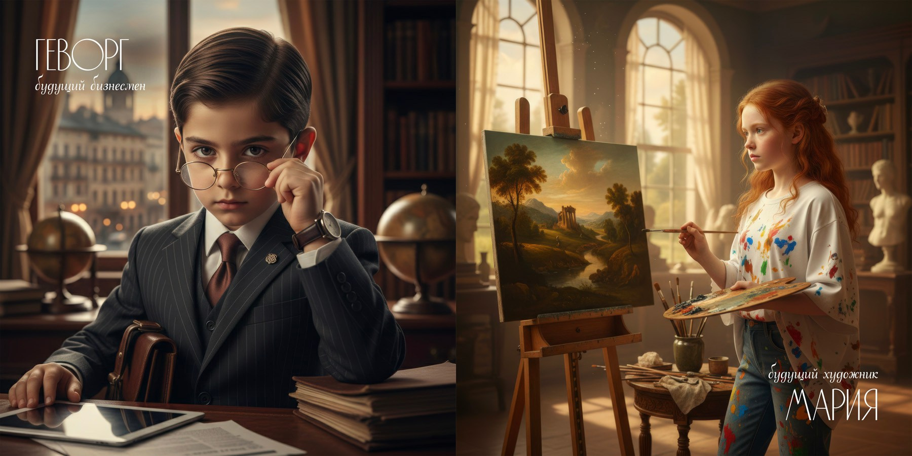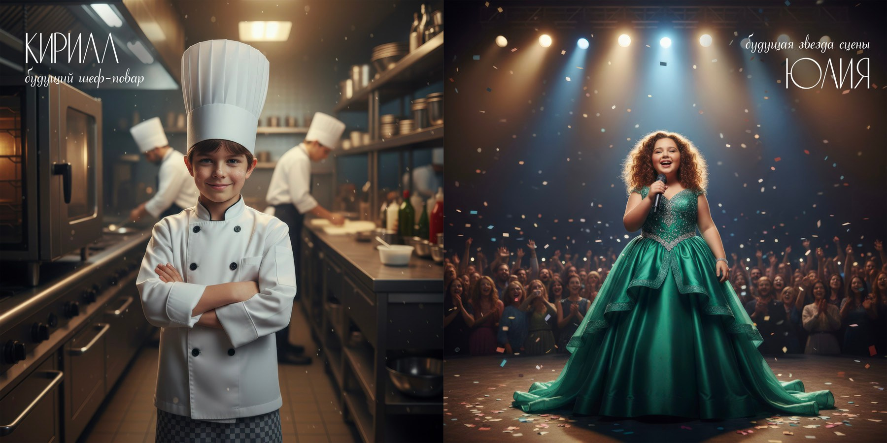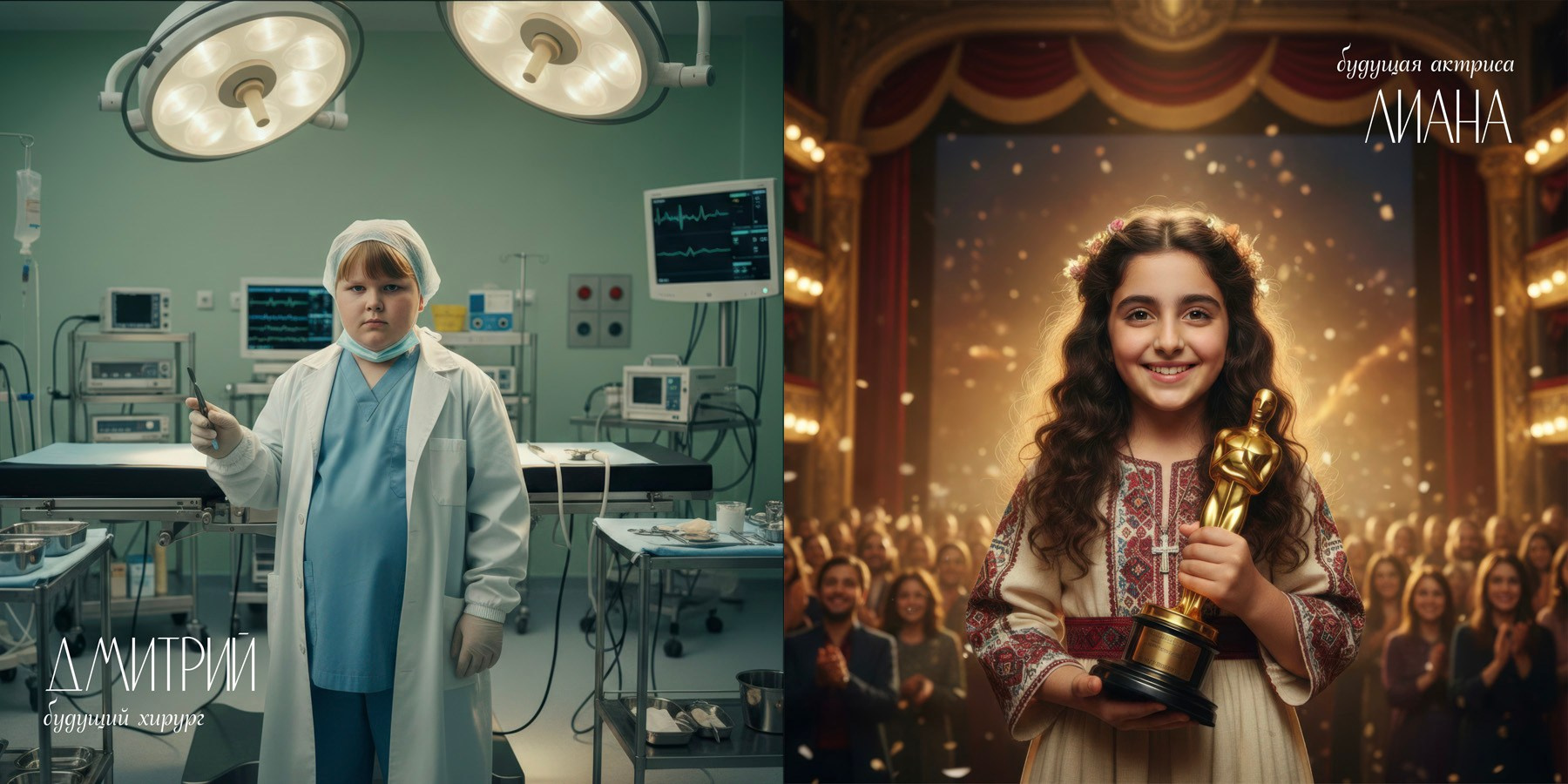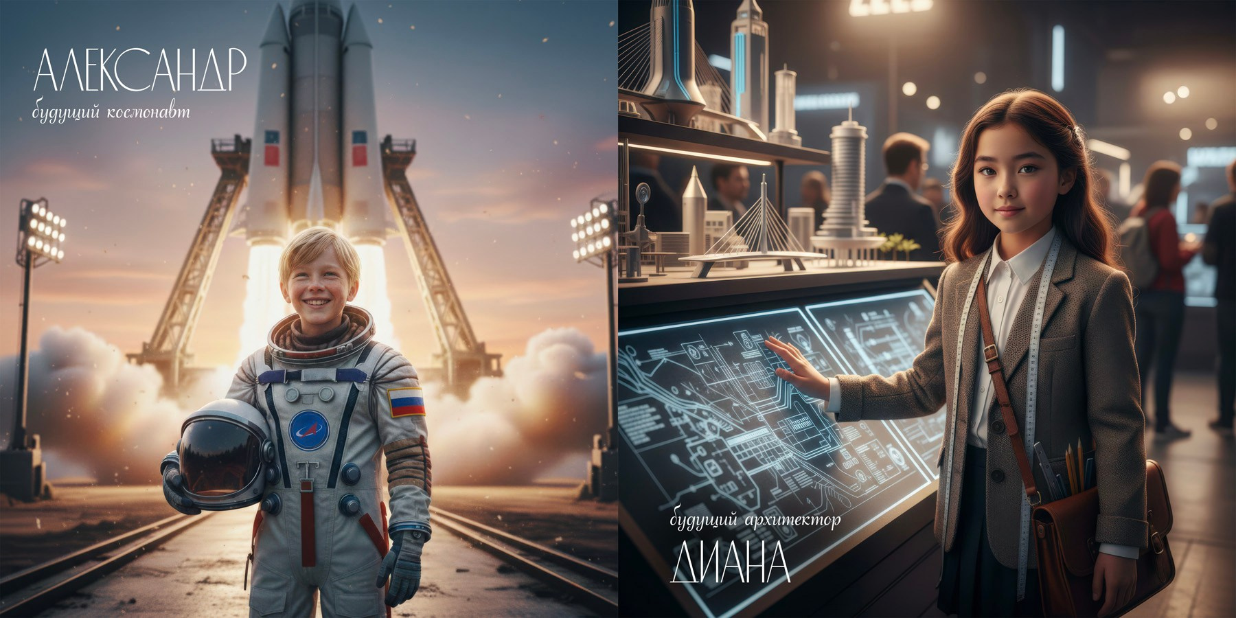 Дети примеряют на себя будущие профессии с помощью нейрогенерации изображений. Каждый ребёнок становится героем уникального образа: врач, архитектор, дизайнер, космонавт, программист, повар, художник и десятки других профессий.